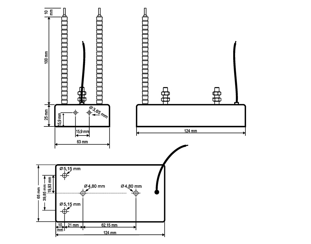 | Typ | Leistung in Watt | Max. Oberflächen- temperatur in °C | Max. Leistungs- dichte in kW/m² |